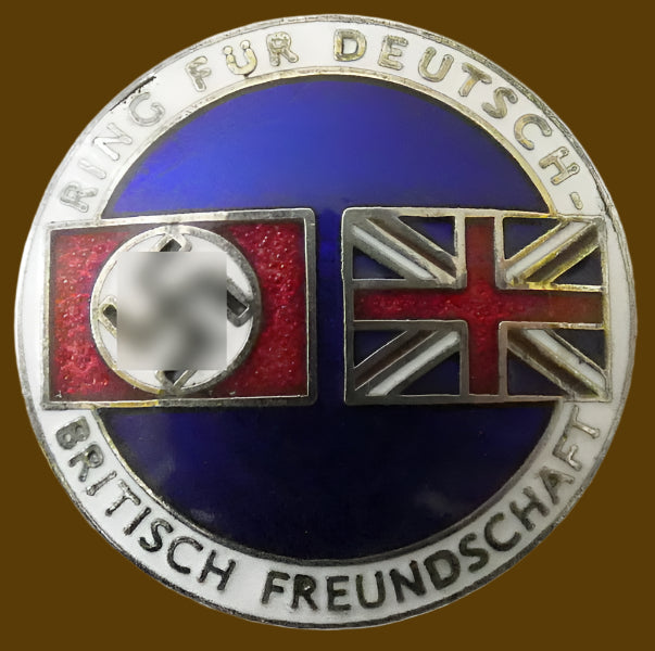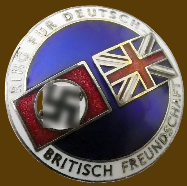 The Anglo-German friendship badges were distributed (to encourage friendship between the two nations) by the "German-British Friendship Union", (pre-WWII alliance of German and British fascists). The manufacturer's marks on reverse.