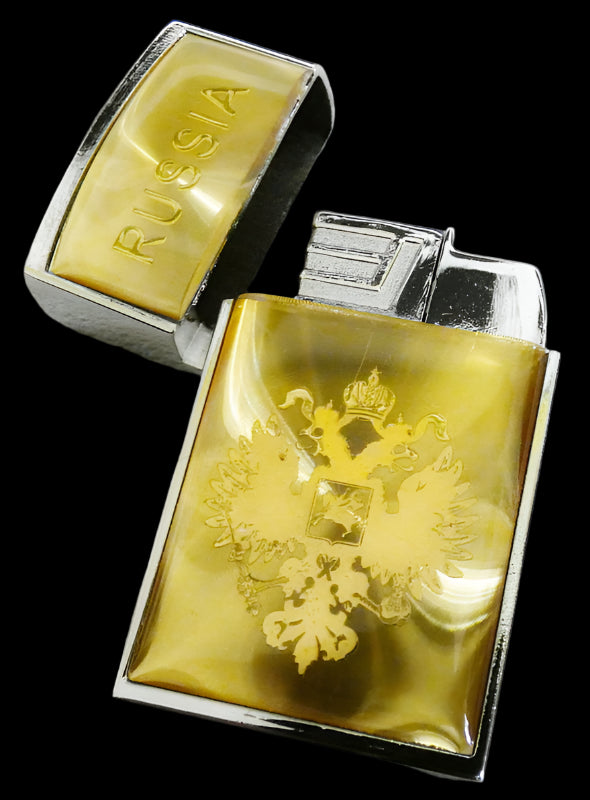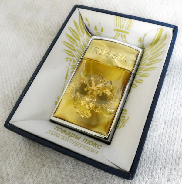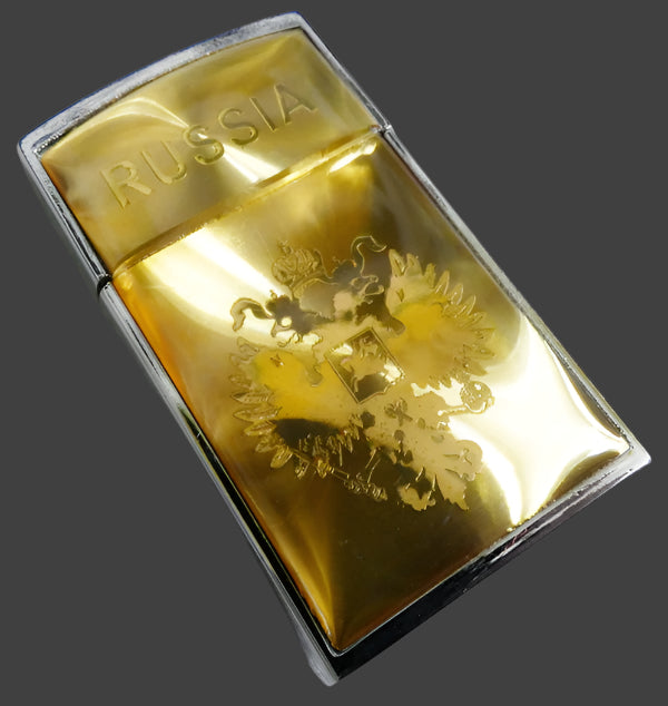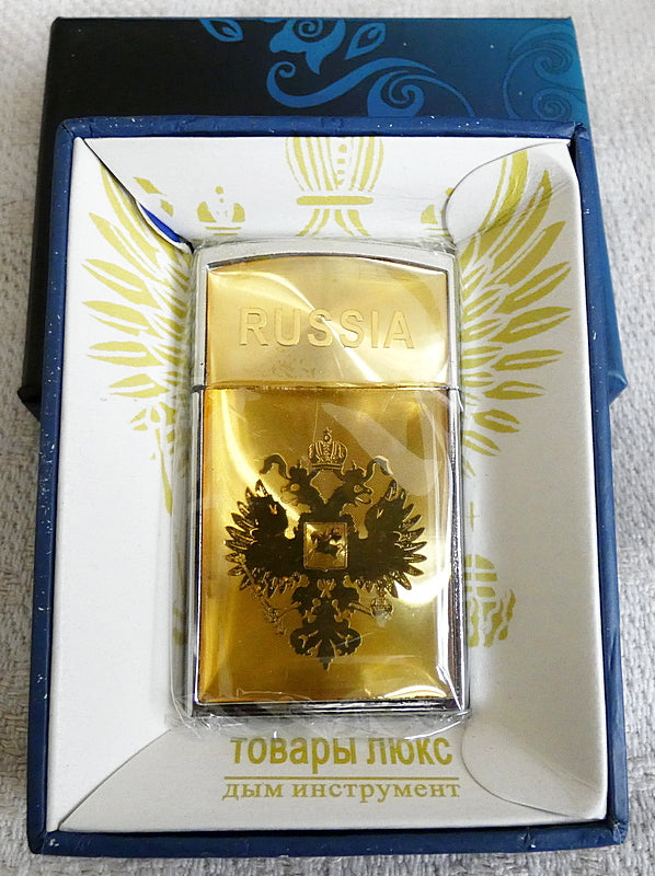 RUSSIA Gold-Colored Cigarette Lighter With Coat of Arms New Original in Gift Box